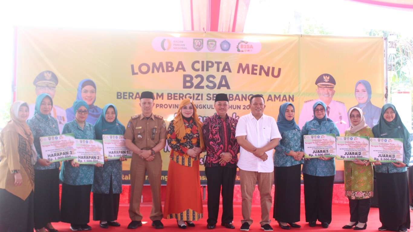 “Pada kesempatan ini saya memberikan apresiasi yang setinggi-tingginya kepada semua tim penggerak PKK se-Provinsi Bengkulu yang telah menyempatkan hadir sebagai peserta mewakili Kota/Kabupaten masing-masing untuk mengikuti Lomba Cipta Menu Beragam, Bergizi Seimbang dan Aman (B2SA) Tahun 2024 tingkat Provinsi Bengkulu, dengan hadirnya seluruh tim penggerak PKK se-Provinsi Bengkulu menunjukan bukti kebersamaan yang memperkuat ketahanan pangan yang telah menjadi tanggung jawab bersama.” Ujarnya.