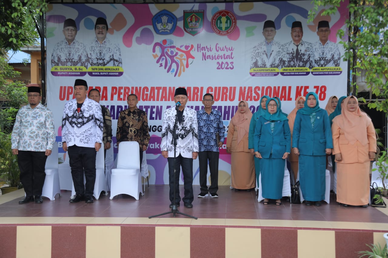 Asahan.TuntasOnline.id - Pemerintah Daerah Kabupaten Asahan menggelar peringatan upacara bendera Hari Guru Nasional dan Hari Ulang Tahun (HUT) Persatuan Guru Republik Indonesia ke-78 Tahun 2023 tingkat Kabupaten Asahan yang dilaksanakan di halaman SMP N I Kisaran dengan mengusung tema "Bergerak Bersama Rayakan Merdeka Belajar" , Sabtu (25/11/2023).