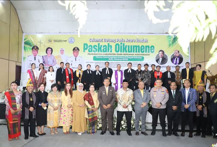 DAIRI,Tuntasonline.id - Bupati Dairi Ir. Vickner Sinaga bersama Wakil Bupati Dairi Wahyu Daniel Sagala menghadiri Ibadah Paskah Oikumene Pemerintah Kabupaten Dairi, Senin (21/4/2025), bertempat di Gedung Olahraga (GOR) Sidikalang.