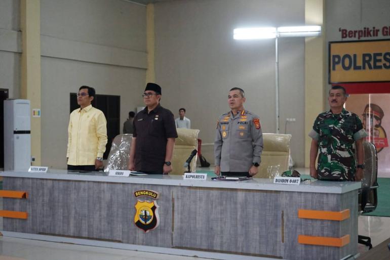 Rapat dipimpin langsung oleh Kapolresta Bengkulu Kombes Pol Rahmad Hidayat dan dihadiri berbagai unsur Forkopimda serta instansi terkait. Turut hadir Penjabat Sekretaris Daerah (Pj Sekda) Kota Bengkulu Medy Pebriansyah, Kasat Pol PP Kota Bengkulu Sahat M. Simorangkir, Plt Kepala Dinas Perhubungan Toni Iskandar Putra, perwakilan Dinas Pemadam Kebakaran dan Penyelamatan, Dinas Kominfo, serta perwakilan DPRD Kota Bengkulu.
