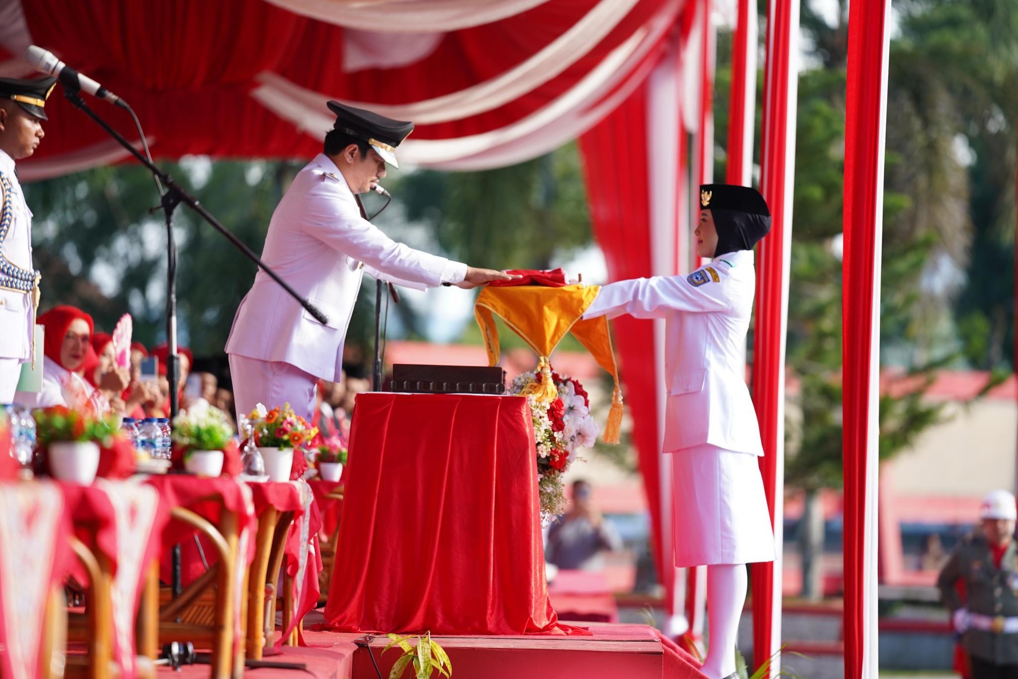 Rangkaian upacara ditutup dengan pengibaran Sang Merah Putih oleh pasukan Paskibraka Bengkulu Utara. Penampilan mereka yang disiplin dan sempurna mendapat apresiasi dan rasa bangga dari seluruh peserta yang hadir.(adv)
