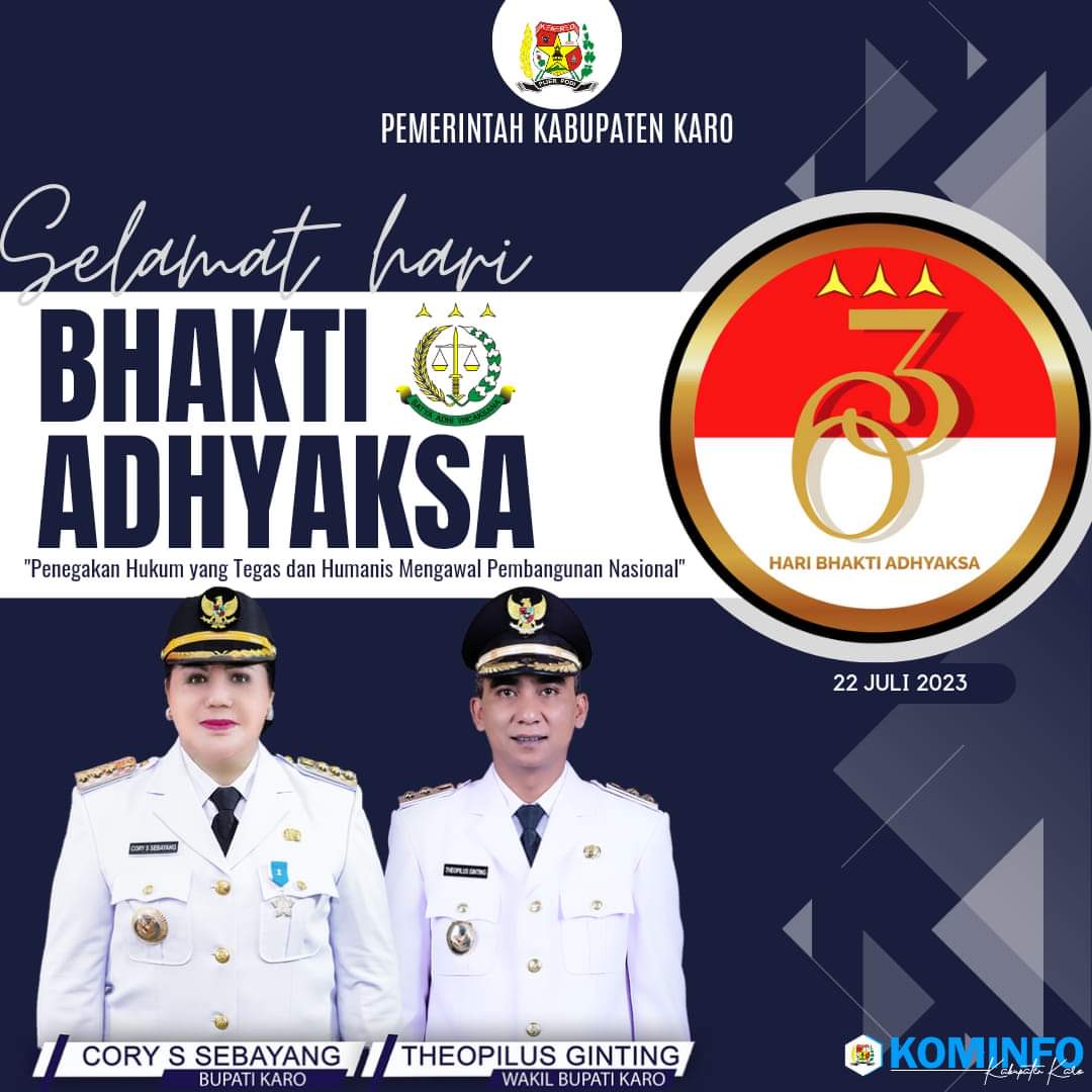 Ditempat terpisah, Bupati kyaro Cory Sriwaty Sebayang mengucapkan, Selamat Hari Bhakti Adhiyaksa ke 63 untuk Kejaksaan Republik Indonesia dan terkhusus juga untuk Kejaksaan Negeri Karo, dimana dalam penegakan hukum yang tegas dan humanis dalam mengawal pembangunan Nasional.