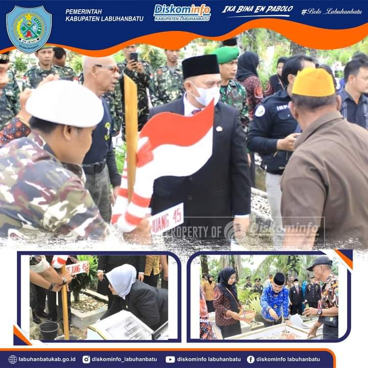 Labuhanbatu, TuntasOnline.Com - Kamis (10/11/2022). Bupati Labuhanbatu dr.H.Erik Adtrada Ritonga,MKM hadiri Upacara dalam rangka pemancangan bambu runcing dan bendera merah putih dari plat besi di makam almarhum Kolonel Inf. Purn.H. Bahari Hasibuan tokoh pejuang angkatan 45 di TPU Padang Matinggi.