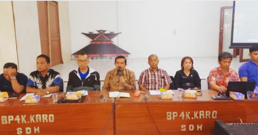 Karo,TuntasOnline.id - Bupati Karo Cory Sriwaty Sebayang yang diwakili oleh Kepala Dinas Pertanian(kadistan) Kabupaten Karo, Ir Metehsa Karo Karo Purba memimpin rapat yang diikuti Pejabat Eselon III dan IV di lingkungan Dinas Pertanian Kabupaten Karo, Kepala UPT wilayah I - VI, serta Koordinator Penyuluh se-Kabupaten Karo, Jumat (21/7)