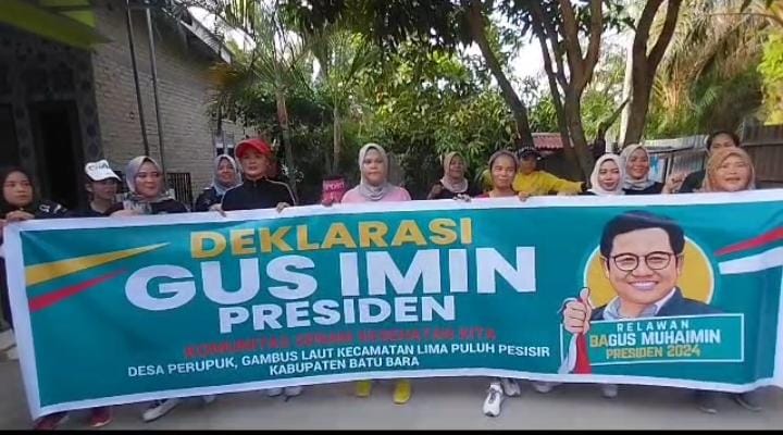 BATU BARA, Tuntasonline.id - Dukungan kepada Ketua Umum Partai Kebangkatan Bangsa (PKB) Muhaimin Iskandar atau yang lebih akrab disapa Gus Imin untuk menjadi Presiden 2024 terus mengalir dari berbagai elemen masyarakat. Salah satunya komunitas senam emak-emak yaitu "Senam Sehat Kita" Kecamatan Lima Puluh Pesisir Kabupaten Batu Bara, Sumatera Utara.
