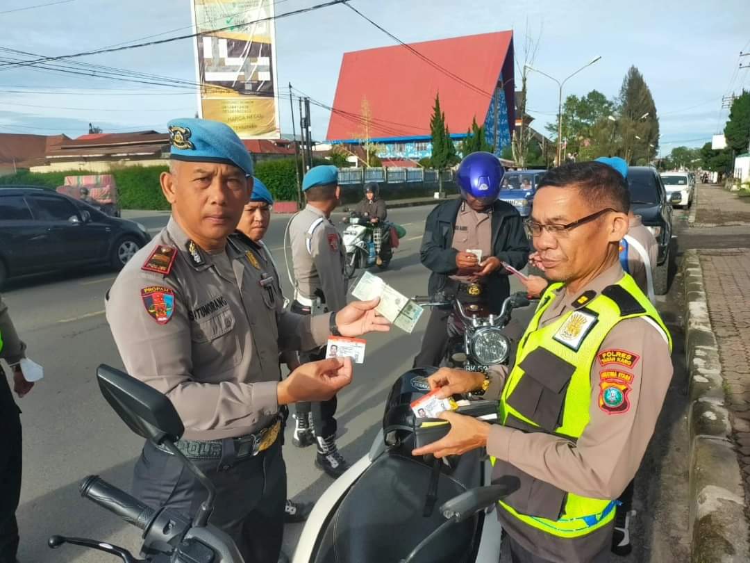 "Jadi kita periksa satu persatu kelengkapan dokumen kendaraan berupa Surat Izin Mengemudi (SIM) dan Surat Tanda Nomor Kendaraan Bermotor (STNK) serta kelengkapan kendaraan lainnya seperti Helm, Spion dan TNKB", ungkap Kasi.