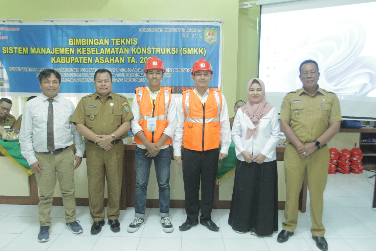 "Dalam pelaksanaan konstruksi, dibutuhkan petugas keselamatan konstruksi, yaitu orang yang memiliki kompetensi khusus di bidang keselamatan konstruksi dalam melaksanakan dan mengawasi penerapan SMKK yang dibuktikan dengan sertifikat kompetensi kerja konstruksi, sesuai dengan Permen PUPR No 10 Rahun 2021 tentang pedoman SMMK. Maka dari itu Pemerintah Kabupaten Asahan, melalui Dinas PUTR Kabupaten Asahan, mengadakan Bimtek SMMK ini", ujar Muhilli. Mengakhiri pidatonya Muhilli berharap agar peserta dapat mengikuti kegiatan ini selama 5 hari kedepan dengan sebaik-baiknya sehingga apa yang diterima dapat bermanfaat di kemudian hari. Dikesempatan ini Asisten Perekonomian dan Pembangunan, Kadis PUTR Kabupaten asahan menyematkan APD kepada peserta Bimtek SMMK secara simbolis.
