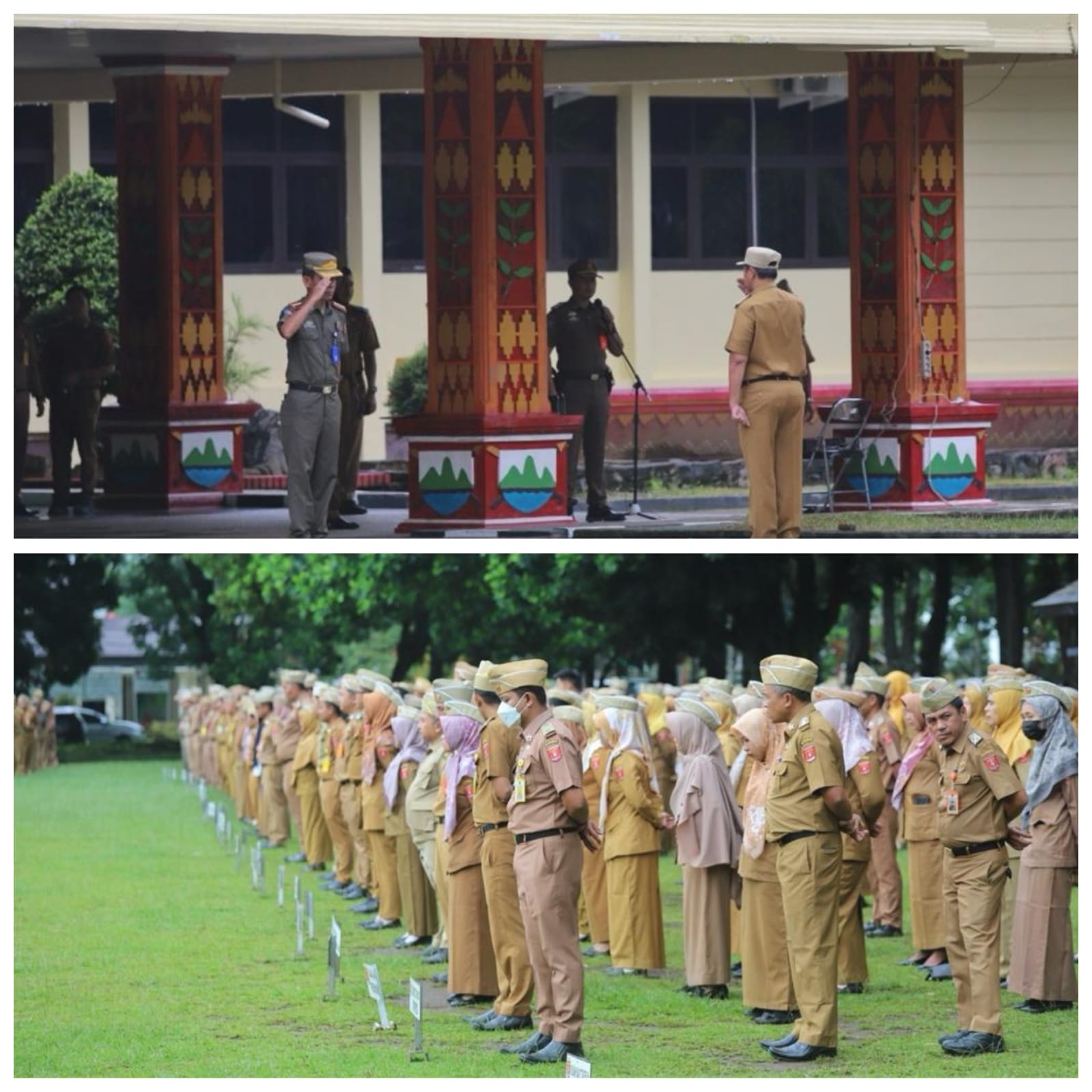 Apel dilaksanakan di Pelataran Kantor Bupati Lampung Barat dipimpin langsung oleh Penjabat (Pj). Bupati setempat Drs. Nukman M.M. Diikuti pejabat struktural dan seluruh jajaran pegawai.
