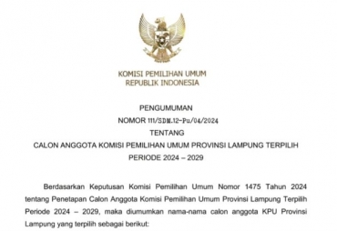 Lampung, TuntasOnline.id - Komisi Pemilihan Umum (KPU) Provinsi Lampung resmi membuka pendaftaran calon Gubernur dan calon Wakil Gubernur untuk periode 2024-2029.