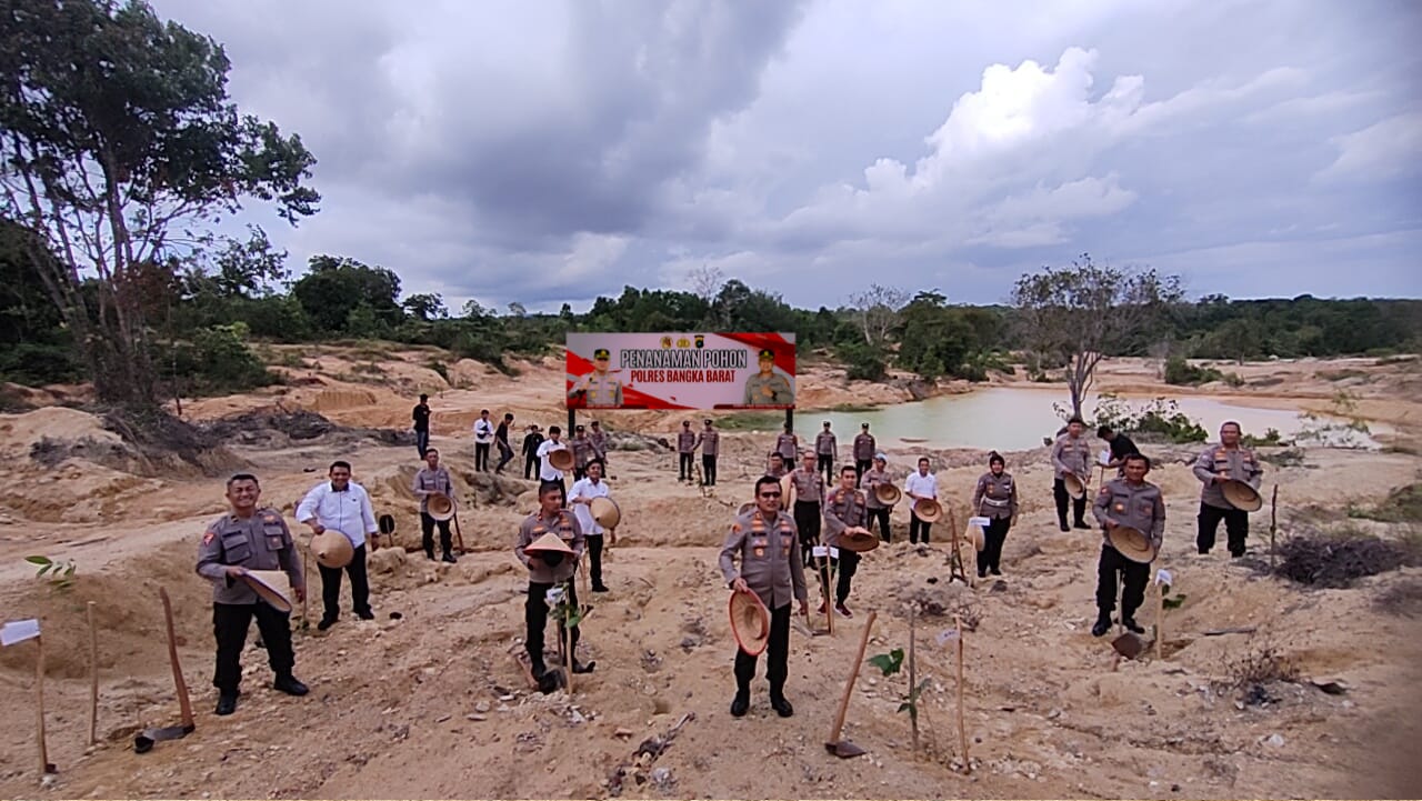 Polres Bangka Barat Laksanakan Penanaman Pohon Serentak di Areal Eks Tambang