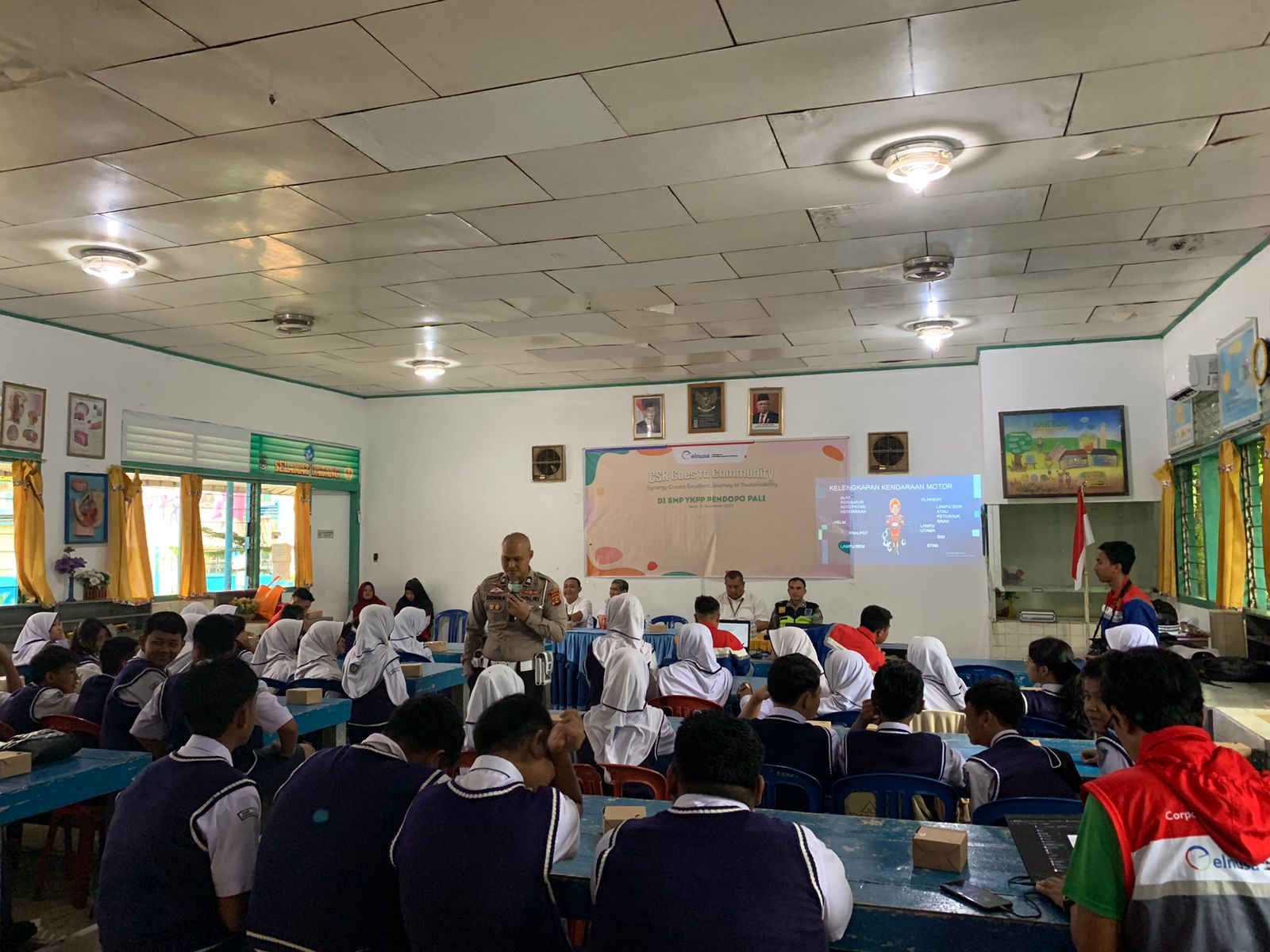 PALI, TuntasOnline.id - Satuan Lalu lintas Polres PALI Polda Sumsel, menggelar kegiatan sosialisasi Police Goes to School kepada Siswa-siswi SMP YKPP Pendopo, pada Senin (27/11/23).