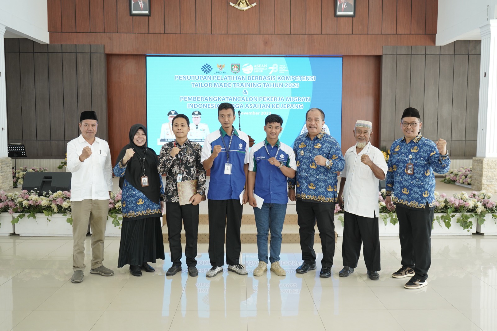 " Pelatihan berbasis kompetensi Tailor Made Training kerja sama antara Pemerintah Kabupaten Asahan dengan Balai Besar Pelatihan Vokasi Produktivitas Medan dan Baznas Kabupaten Asahan Tahun 2023 dengan ini resmi ditutup ". ucap Wakil Bupati Asahan.