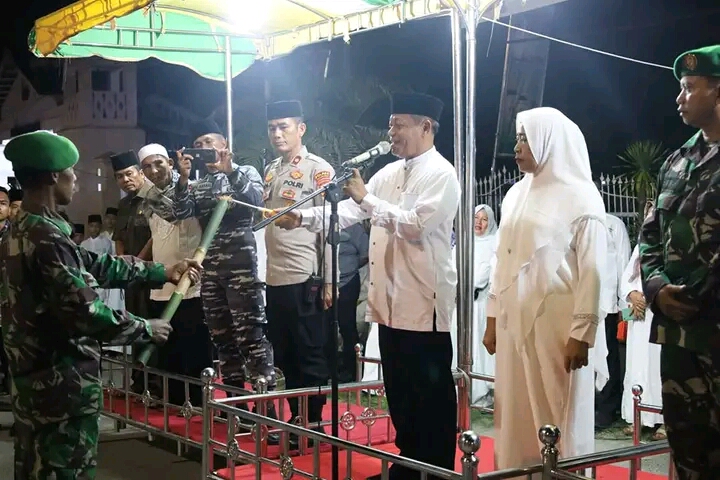 Tampak hadir Pj. Sekda, Ketua TP. PKK, Ketua MUI, Asisten, mewakili Kapolres, mewakili Dan Lanal, mewakili Dandim, Ketua Legiun Veteran, OPD serta barisan Pawai Obor 1 Muharram antara lain barisan Pramuka, Paskib, Etnis, Satpol PP, Damkar, Kecamatan, siswa/i SD, siswa/SMP, puskesmas.(R.E.G)