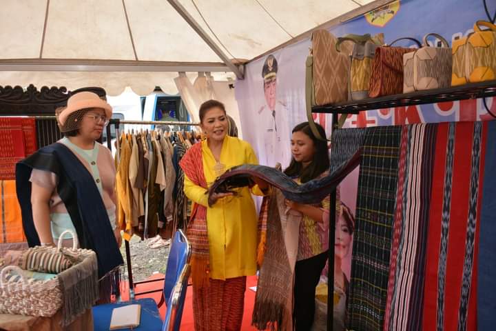 Ketua Dekranasda Dairi dan Anggota DPD RI Kunjungi Stand UMKM