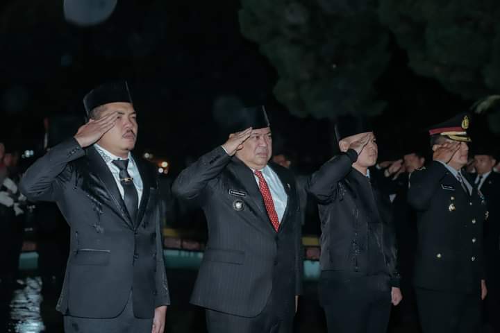 DAIRI,TuntasOnline.id - Hujan deras menjadi saksi prosesi Apel Kehormatan dan Renungan Suci di Taman Makam Pahlawan (TMP) Sidikalang, Kamis (17/8/2023), Pukul 00.00 WIB.