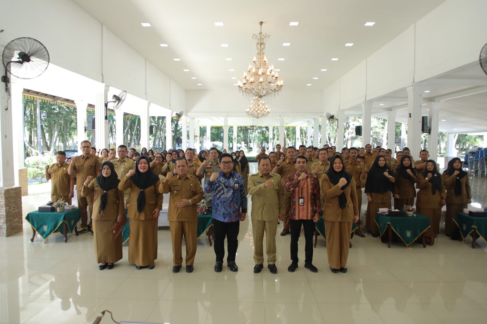 Asahan.TuntasOnline.id - Pemerintah Kabupaten Asahan melalui Badan Kepegawaian dam Pengembangan Sumber Daya Manusia (BKPSDM) Kabupaten Asahan menggelar Sosialisasi Peningkatan Kompetensi Jabatan Fungsional yang di Setarakan di Lingkungan Pemerintah Kabupaten Asahan di Pendopo Rumah Dinas Bupati Asahan, Senin (27/11/2023).