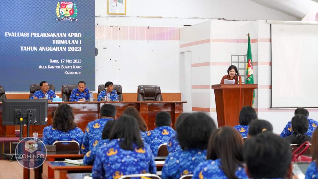 Karo,TuntasOnline.id - Pemerintah Kabupaten Karo gelar rapat evaluasi pelaksanaan anggaran triwulan pertama Tahun Anggaran 2023 yang dilaksanakan di Aula Kantor Bupati Karo, Rabu (17/05/2023).