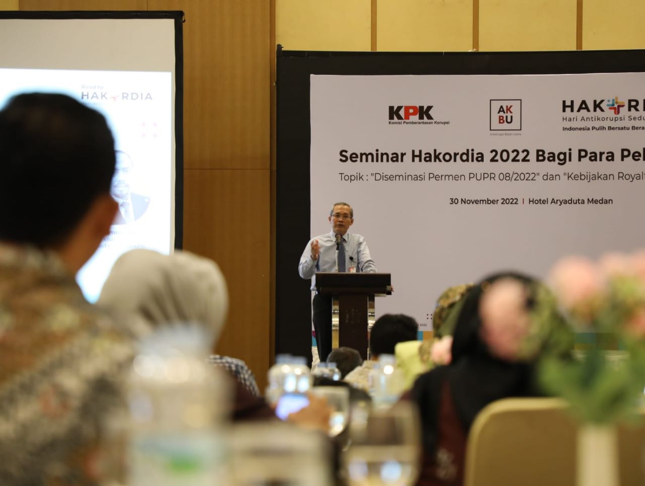 Sumatera Utara,TuntasOnline.com - Komisi Pemberantasan Korupsi (KPK) mendorong para pelaku usaha sebagai pahlawan keuangan untuk dapat menjalankan bisnisnya secara berintegritas. Hal tersebut disampaikan Wakil Ketua KPK Alexander Marwata pada Seminar Hakordia 2022 bagi para Pelaku Usaha bertajuk “Optimalisasi Permen PUPR 08/2022” dan “Kebijakan Royalti Lagu dan Musik” di Kota Medan,Sumatera Utara (30/11).