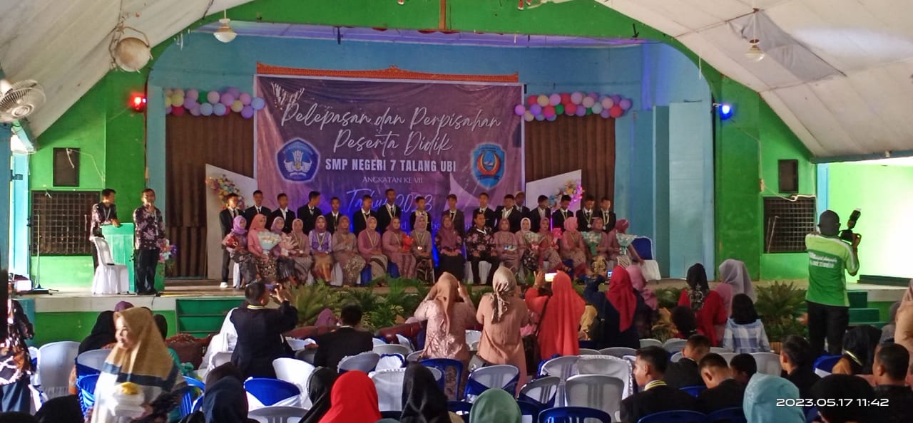 PALI, TuntasOnline.id - Sekolah Menengah Pertama (SMP) Negeri 7 Talang Ubi melaksanakan pelepasan 134 peserta didik di Gedung Pesos Pendopo, Rabu 17 Mei 2023.