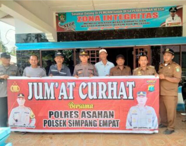 Asahan, Tuntasonline.id - Jumat (10/11/2023) Polsek Simpang Empat Polres Asahan yang diwakili oleh Wakapolsek melaksanakan Jumat Curhat Kamtibmas di Dusun I Perkebunan Hessa Kecamatan Simpang Empat Kabupaten Asahan.