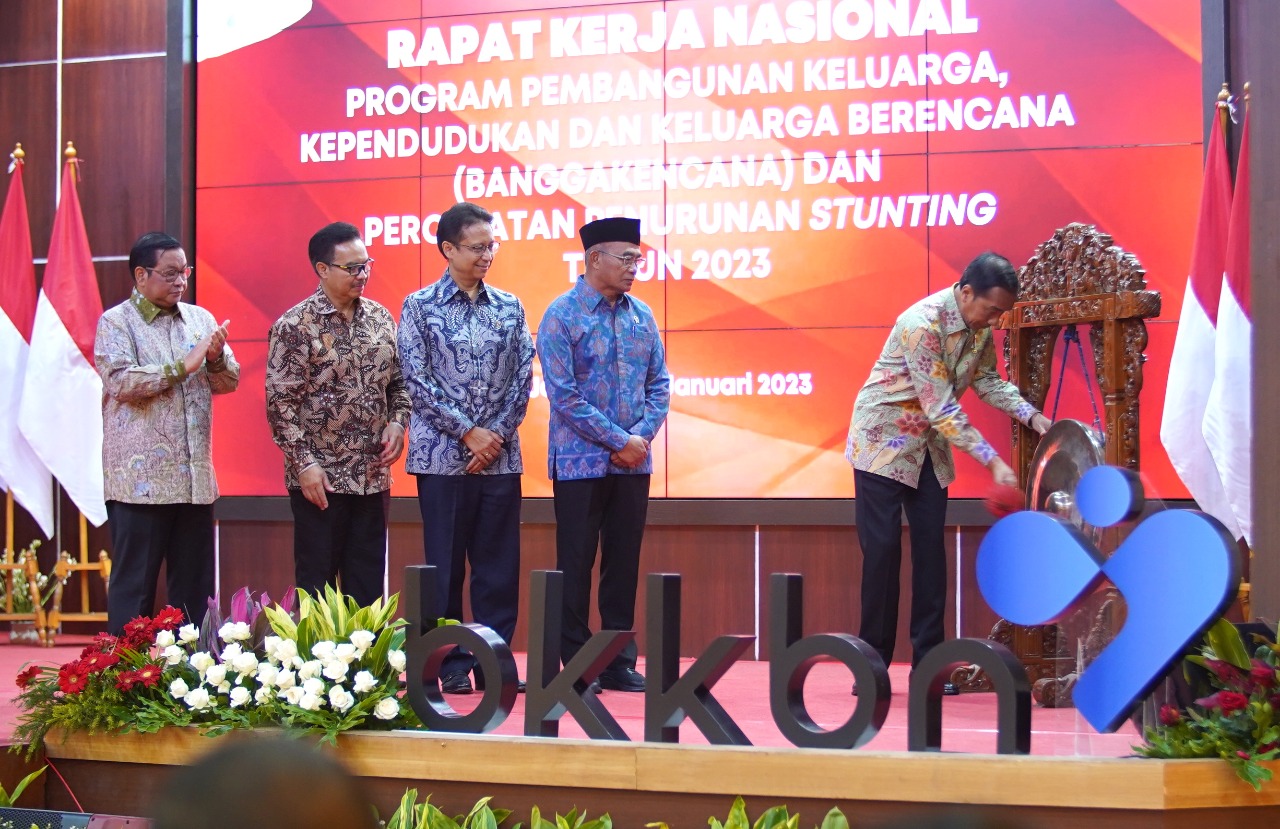 BKKBN menggelar Rapat Kerja Nasional membahas strategi pembangunan keluarga, kependudukan, dan keluarga berencana serta program percepatan penurunan stunting tahun 2023 di auditorium kantor BKKBN Pusat di Jakarta, Rabu (25/01/2023).