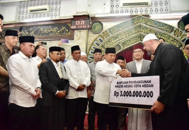 Menhan RI Serahkan 3 Miliar Untuk Pembangunan Masjid Agung Sumut