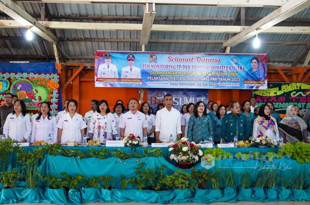 Karo,TuntasOnline.id - Wakil Bupati Karo, Theopilus Ginting hadiri acara Monitoring Desa Percontohan Pelaksana Tertib Administrasi PKK oleh Tim Monitoring dari TP. PKK Provinsi Sumatera Utara di Desa Semangat, Kecamatan Merdeka, Kabupaten Karo, Rabu (05/07/2023).