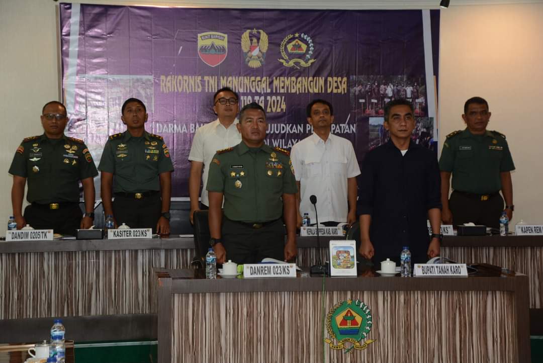 Hadir dalam giat Rakornis tersebut, Dandim 0205/TK Letkol Inf Ahmad Afriyan Rangkuti, Wakil Bupati Karo Theopilus Ginting, Kasiter Rem 023/KS Mayor Inf Hermansyah, Kapenrem Mayor Inf JE.Situmeang, Kepala Bapeda Karo  Nasib Sianturi.
