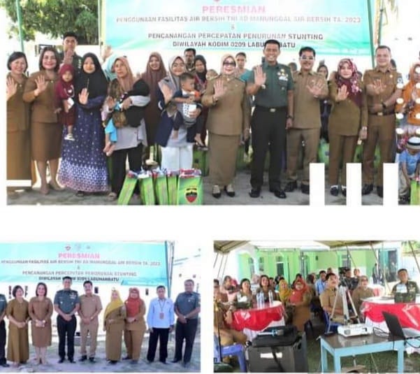 Labuhanbatu, TuntasOnline.id - Wakil Bupati Labuhanbatu Hj. Ellya Rosa Siregar, S.Pd., MM bersama Kasdim 0209 Labuhanbatu Mayor Inf. Hendra Gunawan meresmikan Fasilitas Air Bersih TNI AD Manunggal Air Bersih dan Pencanangan Percepatan Penurunan Stunting di Wilayah Kodim 0209/LB di Halaman Musholla As-Salam Bukit Rezeki, Kelurahan Padang Matinggi, Kec. Rantau Utara, Sealsa (25/7/2023).