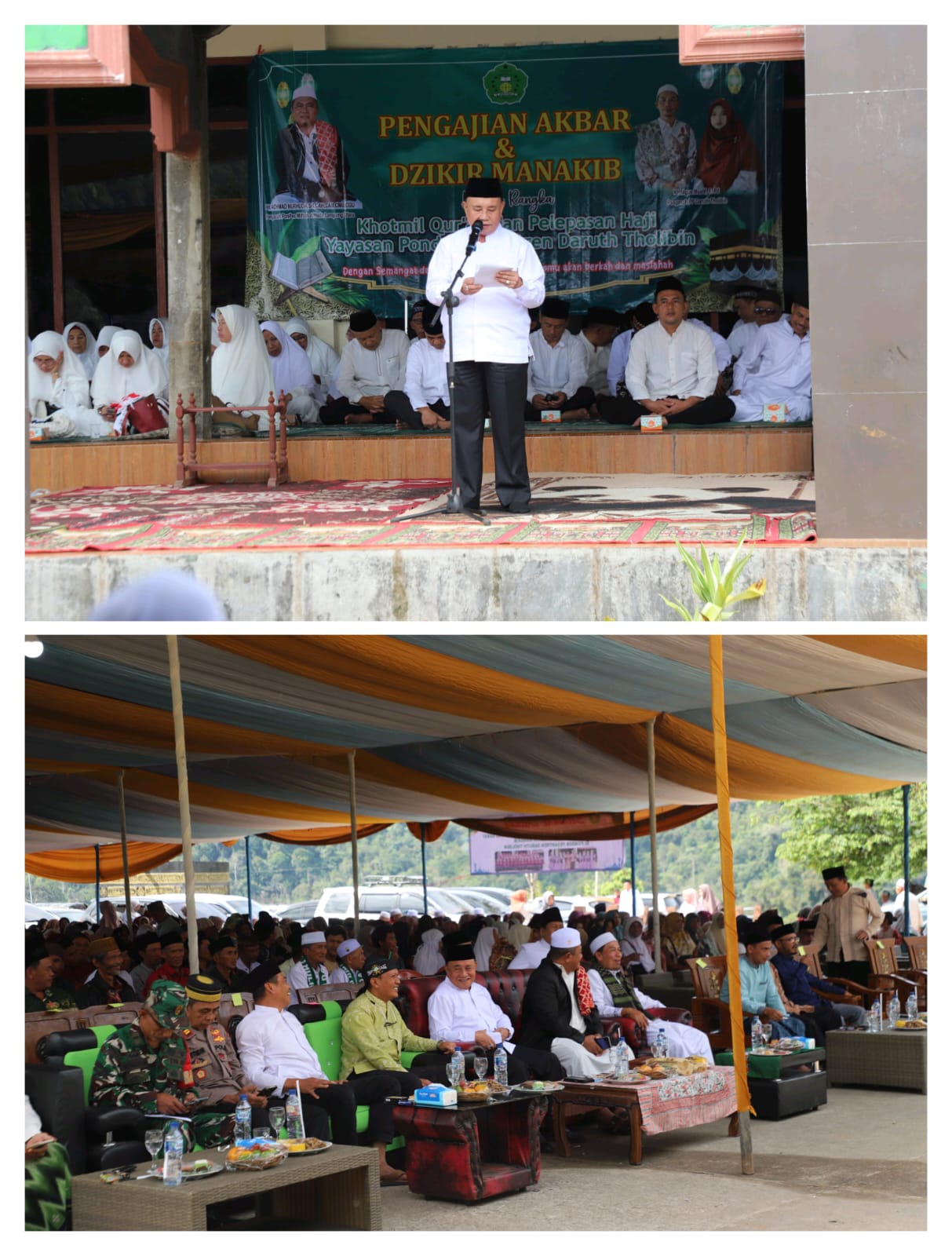 Lampung Barat, Tuntasonline.id - Wakil Bupati Lampung Barat, Drs. Mad Hasnurin, menghadiri sekaligus memberikan sambutan dalam acara Pengajian Akbar dan Zikir Manakib yang dirangkaikan dengan Khotmil Qur’an 60 Santri serta Pelepasan 88 Jamaah Calon Haji Pondok Pesantren Daruth Tholibin.
