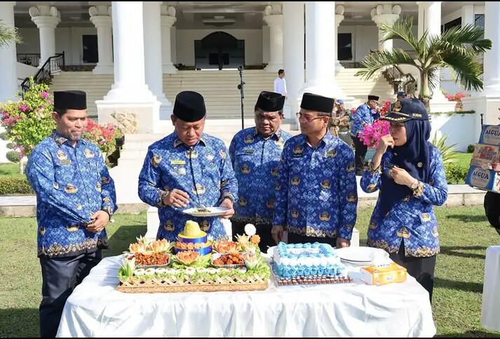 Selanjutnya Walikota Tanjung Balai H Waris Tholib selaku Dewan Penasehat bersama Pengurus KORPRI Kota Tanjung Balai merayakan Resepsi HUT ke-52 KORPRI tahun 2023, di Lapangan Tengah Kantor Walikota Tanjung Balai,