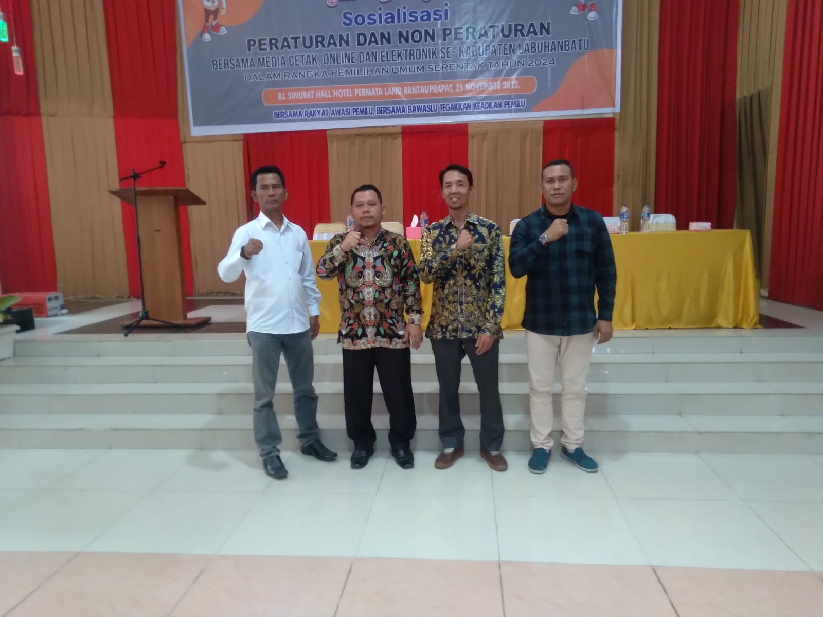 Labuhanbatu, TuntasOnline.Com - Bawaslu Kabupaten Labuhanbatu Provinsi Sumatera Utara gelar sosialisasi Peraturan Dan Non Peraturan bersama media, Online. Dan Elektronik Se-kabupaten Labuhanbatu dalam rangka Pemilihan Umum Serentak Tahun 2024.