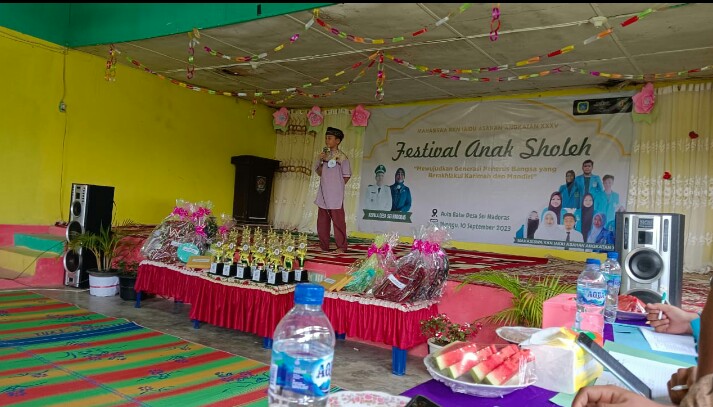 Personel Bhabinkamtibmas juga Menghadiri kegiatan Festival anak soleh di kantor desa sei Nadoras yang diadakan oleh mahasiswa KKN IAIDU Asahan Angkatan XXXV.