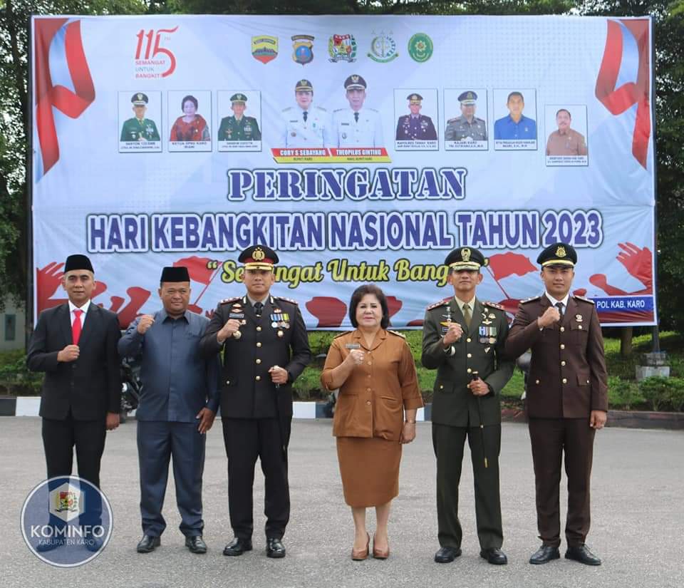 Karo,TuntasOnline,id - Dalam rangka memperingati Hari Kebangkitan Nasional Tahun 2023 Pemerintah Kabupaten Karo bersama Forkopimda Kabupaten Karo laksanakan Upacara Peringatan Hari Kebangkitan Nasional ke-115 Tahun 2023 di halaman Kantor Bupati Karo, Senin (22/05/2023).