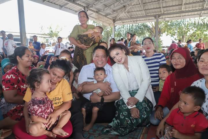 “Semoga semakin sehat, gizinya cukup dan berimbang ya, Bu. Sama-sama kita pantau tumbuh kembang anak kita agar tetap sehat,” kata Eddy seraya menyerahkan bantuan.