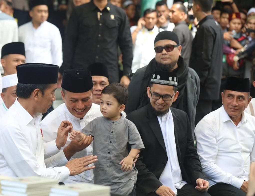 Sumatera Utara,Tuntasonline.id - Presiden Republik Indonesia (RI) Joko Widodo, Gubernur Sumatera Utara (Sumut) Edy Rahmayadi, ustaz kondang Adi Hidayat serta ribuan masyarakat, alim ulama dan lainnya menghadiri Haul ke-2 Almarhum Haji Anif bin H Gulrang Shah di Masjid Al Musanif Medan, Jumat (25/8).