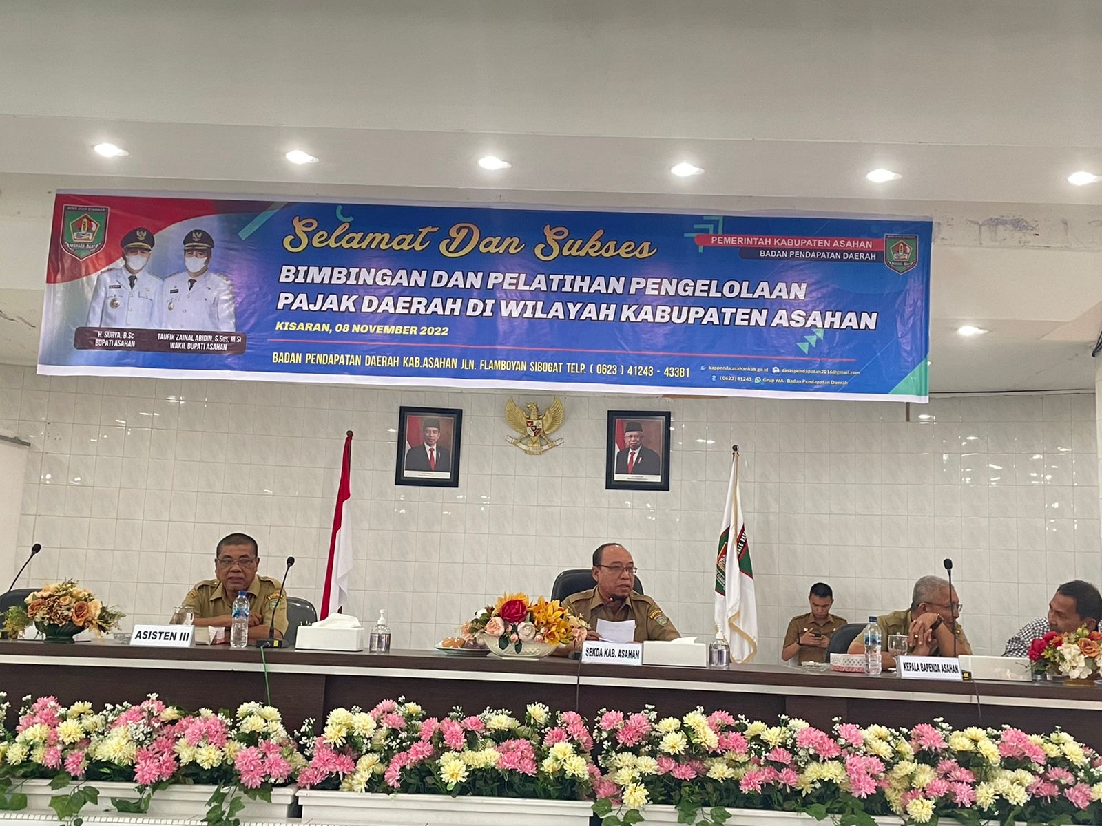 Asahan, TuntasOnline.com - Sekretaris Daerah (Sekda) Kabupaten Asahan Drs. John Hardi Nasution, M.Si membuka Bimbingan dan Pelatihan Pengelolaan Pajak Daerah Wilayah Kabupaten Asahan di Aula Melati Kantor Bupati Asahan, Rabu (09/11/2022).