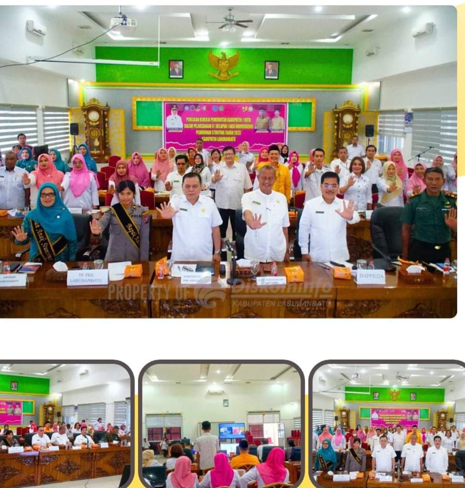 Labuhanbatu, TuntasOnline.id - Mewakili Pelaksana Tugas Bupati Labuhanbatu, Sekretaris Daerah Kabupaten Labuhanbatu Hasan Heri Rambe memberikan paparan Kinerja Pemerintah Kabupaten Labuhanbatu dalam Pelaksanaan Delapan Aksi Konvergensi Penurunan Stunting Tahun 2023 pada kegiatan Penilaian Kinerja Pemerintah Kabupaten / Kota dalam Pelaksanaan Delapan Aksi Konvergensi Penurunan Stunting Tahun 2023 bersama Tim Percepatan Penurunan Stunting Provinsi Sumatera Utara melalui Video Conference di Ruang Data dan Karya Kantor Bupati Labuhanbatu, Rabu (15/05/2024).