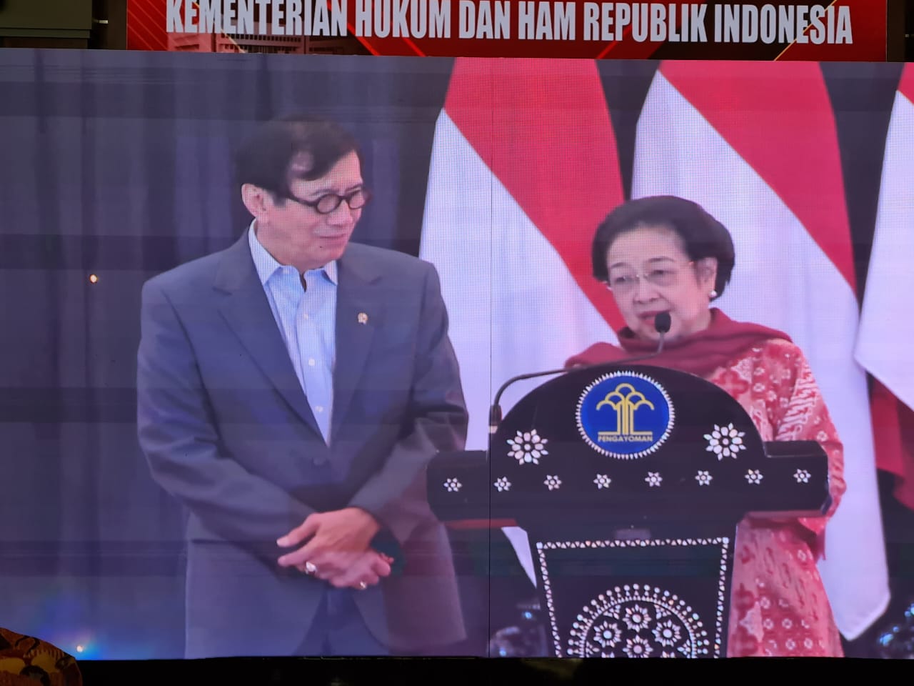 Presiden Republik Indonesia kelima sekaligus Ketua Umum Partai Demokrasi Indonesia Perjuangan (PDIP), Prof. DR. (H.C.) Megawati Soekarnoputri yang hadir dalam kesempatan ini turut berbahagia atas launching buku biografi Yasonna H. Laoly.