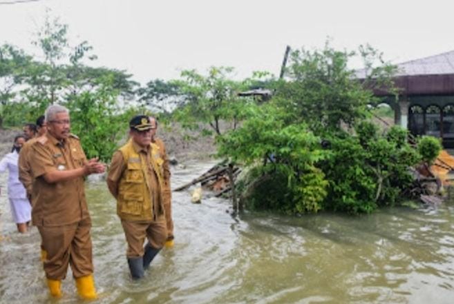 Delisersang, Tuntasonline.com - Wakil Bupati (Wabup) Deli Serdang, HM Ali Yusuf Siregar meninjau kondisi banjir di Dusun Mesjid, Desa Beringin, Kecamatan Beringin, Kabupaten Deli Serdang, Senin (12/12/2022).