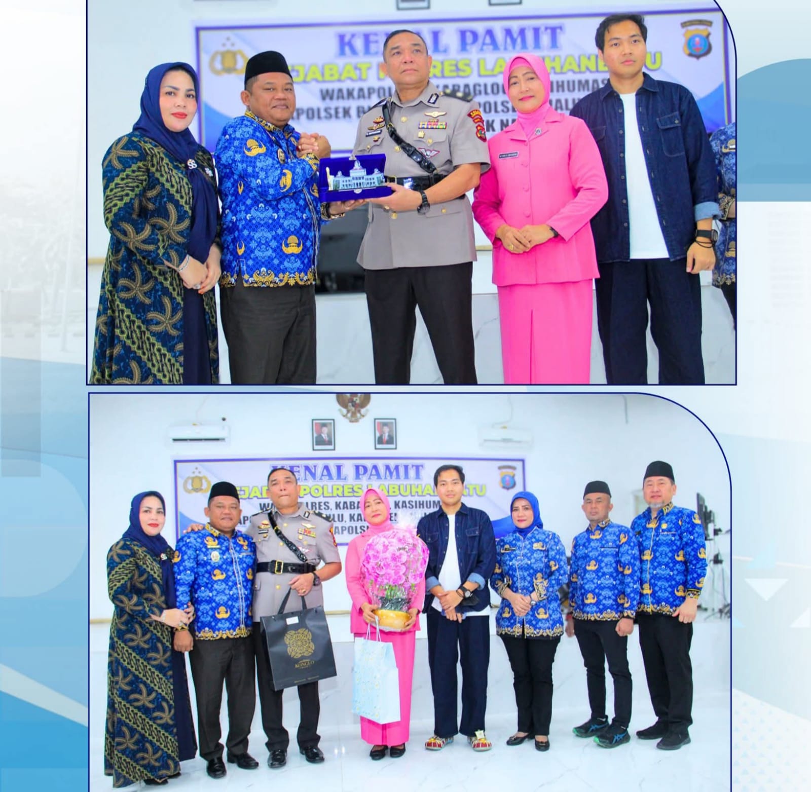 Usai sambutan, acara dilanjutkan dengan pemberian cenderamata dari unsur Forkopimda, jajaran pejabat Polres Labuhanbatu, serta para tamu undangan sebagai bentuk apresiasi atas pengabdian yang telah diberikan.