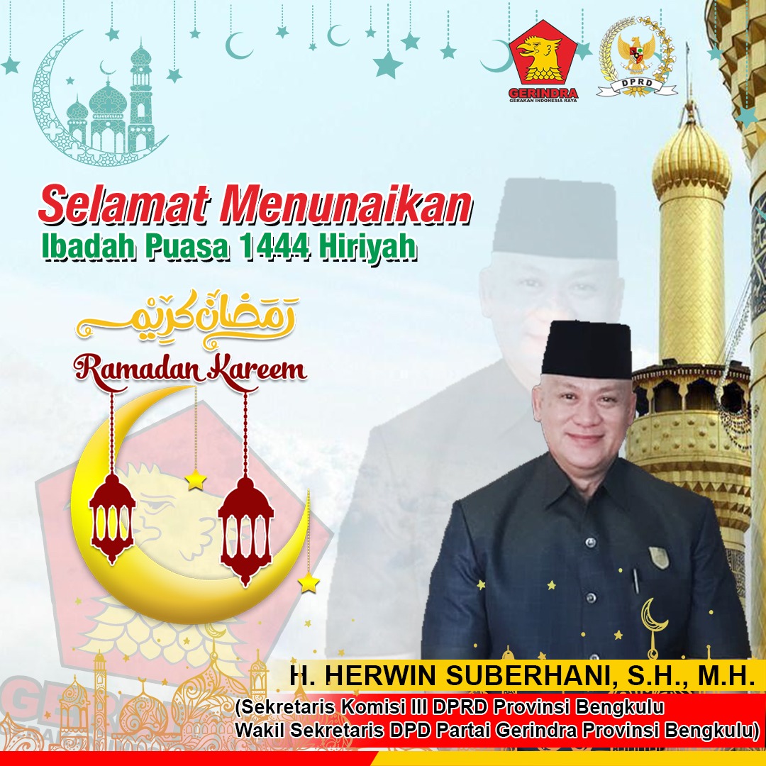 Bengkulu, TuntasOnline.id - Sekretaris Komisi III DPRD Provinsi Bengkulu H Herwin Suberhani SH MH mengucapkan Selamat Menunaikan Ibadah Puasa 1444 Hijriah.