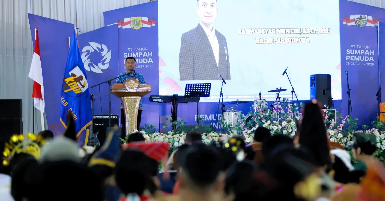 Dairi,Tuntasonline.id- Bupati Dairi, Vickner Sinaga yang diwakili Kepala Dinas Pariwisata Pemuda dan Olahraga (Disparbupora), Rahmat Syah Munthe menghadiri peringatan Hari Sumpah Pemuda ke 97 yang digelar oleh Komite Nasional Pemuda Indonesia (KNPI) Dairi di GOR Sidikalang, Selasa (28/10/2025).