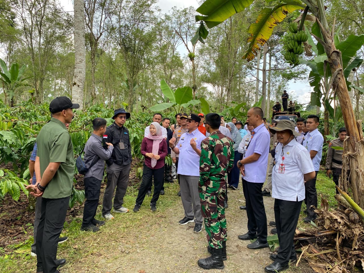 Pj. Bupati Nukman melihat berbagai persiapan yang sudah dilakukan, mulai dari akses jalan hingga pohon kopi yang akan ditanam dan dipetik oleh Presiden.