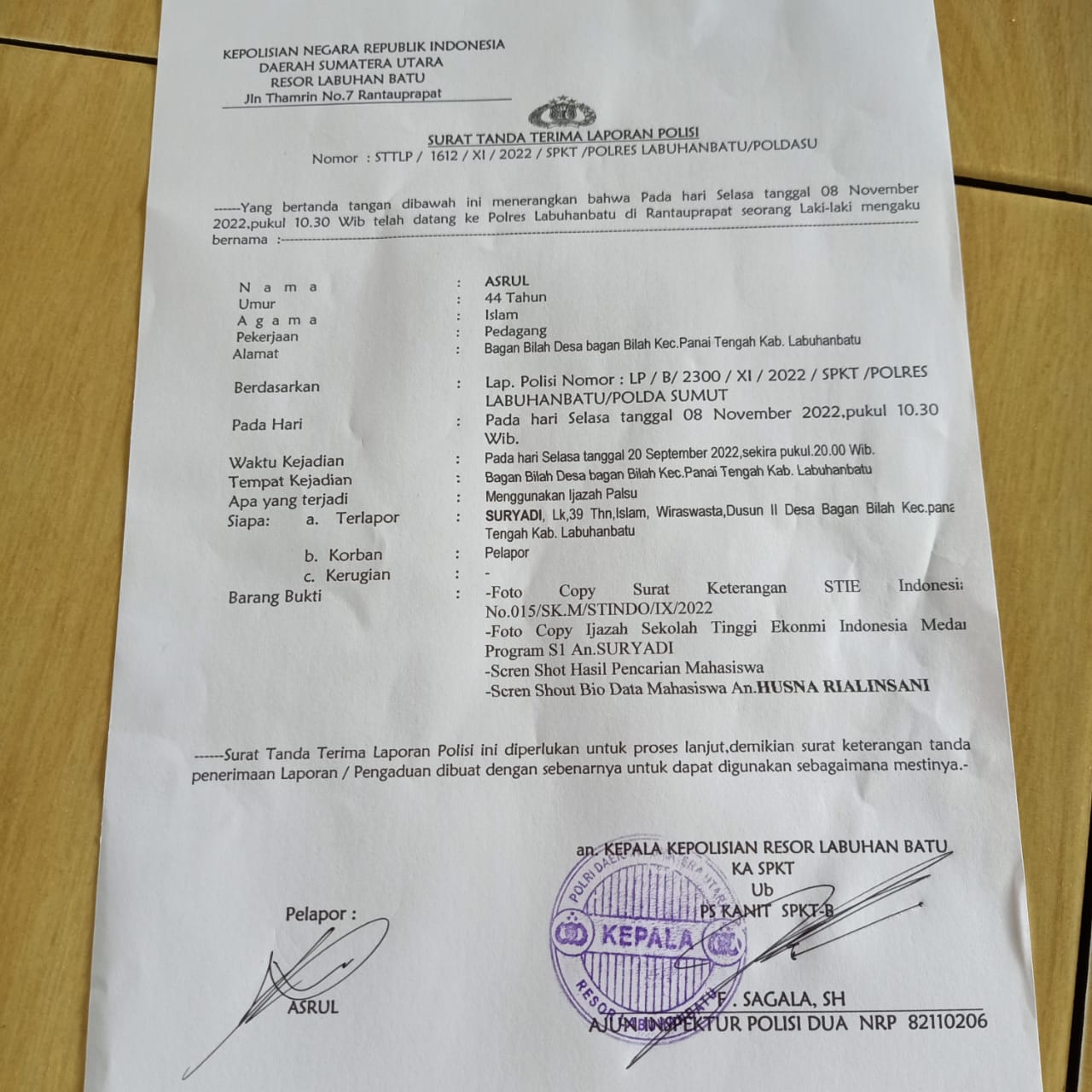 Labuhanbatu, TuntasOnline.Com - Pihak kepolisian Resor Polres Labuhanbatu diminta untuk segera menuntaskan laporan masyarakat atas dugaan tindak pidana penggunaan ijazah palsu oleh Calon Kepala Desa terpilih, Desa Bagan Bilah, Kec. Panai Tengah, Kabupaten Labuhanbatu, Provinsi Sumatera Utara dengan Laporan Polisi No STTLP/1612/XI/2022/SPKT/Polres Labuhanbatu.