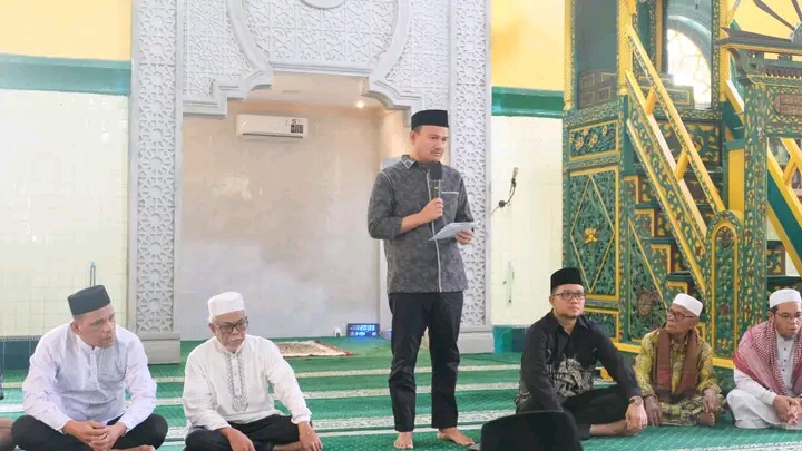 Tanjungbalai,Tuntasonline.id - Wali Kota Tanjungbalai, Mahyaruddin Salim didampingi Wakil Wali Kota Muhammad Fadly Abdina melaksanakan Sholat Jumat Perdana di bulan ramadhan usai dilantik oleh Presiden RI Prabowo Subianto di Masjid Raya Sultan Ahmadsyah, Tanjungbalai, Jumat (7/3/2025).